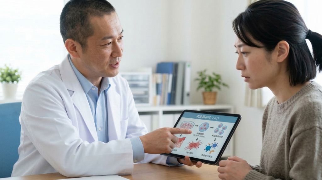 2025年8月には、東京都内のクリニックで自己脂肪由来幹細胞の点滴投与中に患者が急変し死亡するという痛ましい事故が発生しました。厚生労働省は再生医療等安全性確保法に基づく初の緊急命令を発出し、当該クリニックに治療の一時停止を命じています(出典:厚生労働省 報道発表)。再生医療そのものが危険なわけではありませんが、「どのクリニックで受けるか」の判断が、安全性を分ける決定的な要因となり得ることを、この事故は示しました。